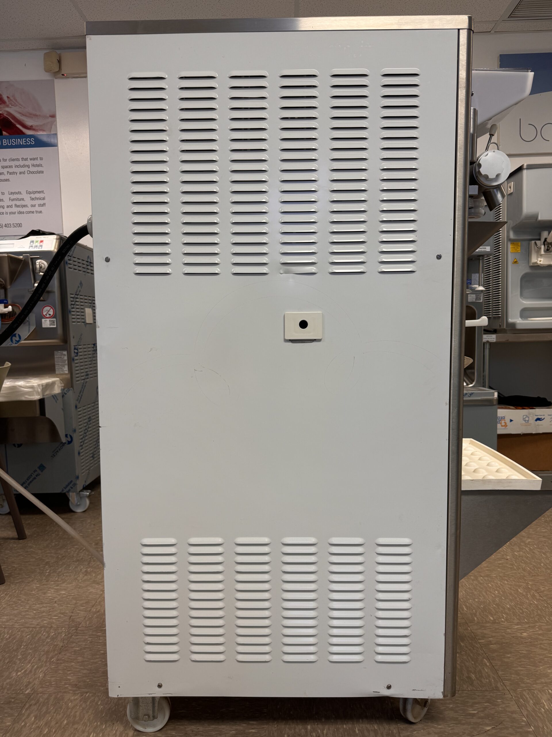 Este modelo cuenta con un panel de control electrónico que permite a los usuarios manejar fácilmente la producción mediante un único panel táctil. Configure su pasteurizador con los 11 programas preestablecidos, desde mantequilla hasta ganache, personalice la congelación por lotes con 18 ciclos de programas preestablecidos según sus preferencias y controle la velocidad de rotación variable de la batidora de acero inoxidable de alta calidad mediante el panel táctil. La precisión y el control total sobre el proceso de congelación proporcionan al operador resultados uniformes y superiores en todo momento.