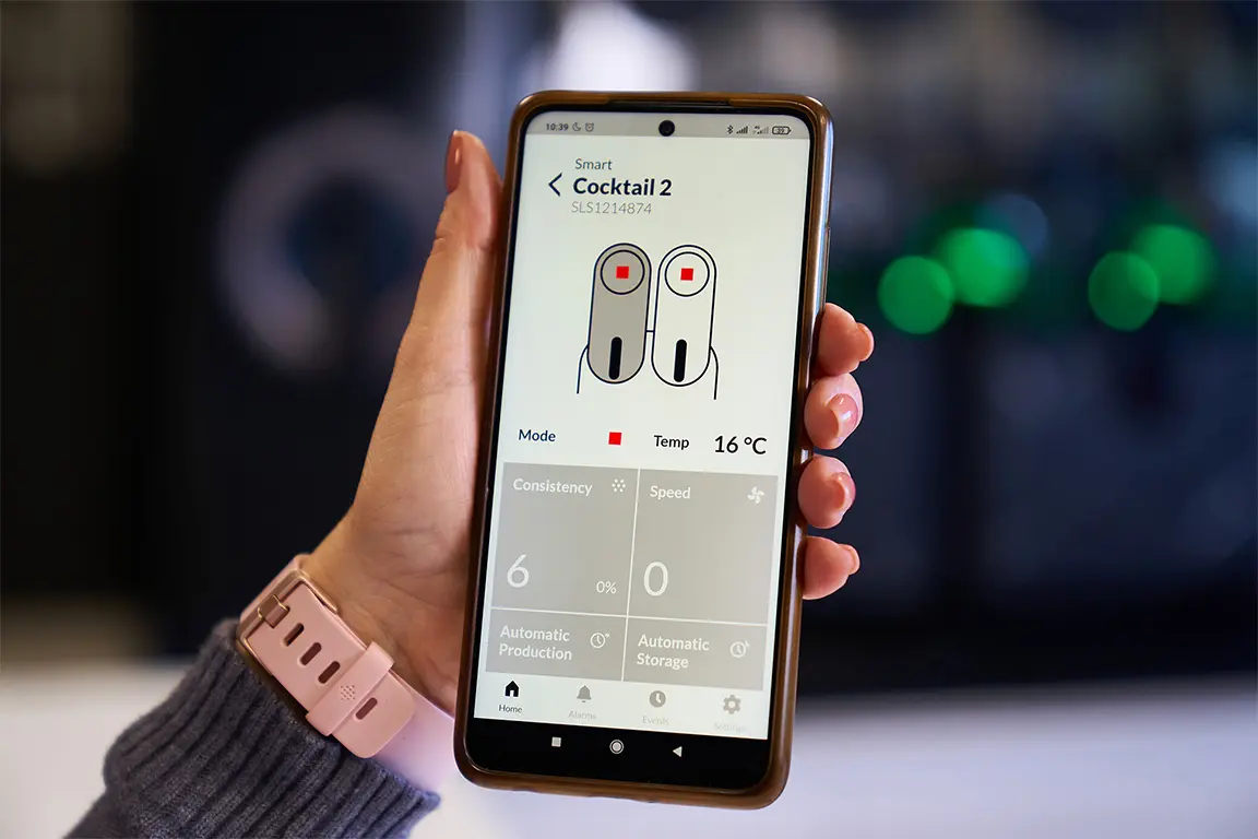 Una estética limpia y armoniosa, combinada con altas posibilidades de personalización y luces LED en varios colores, hace que la Granizadora V-air Smart no solo sea funcional sino también un elemento decorativo que destacará su producto.